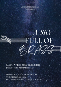 Auch wir heben ab und gehen auf die Mission ins Weltall. Wir laden euch ein, am 24. und 25. April in der Mehrzweckhalle in Brislach mit auf dieses Abenteuer zu kommen. Sei auch du dabei und staune ab dem Himmel voller musikalischer Klänge.